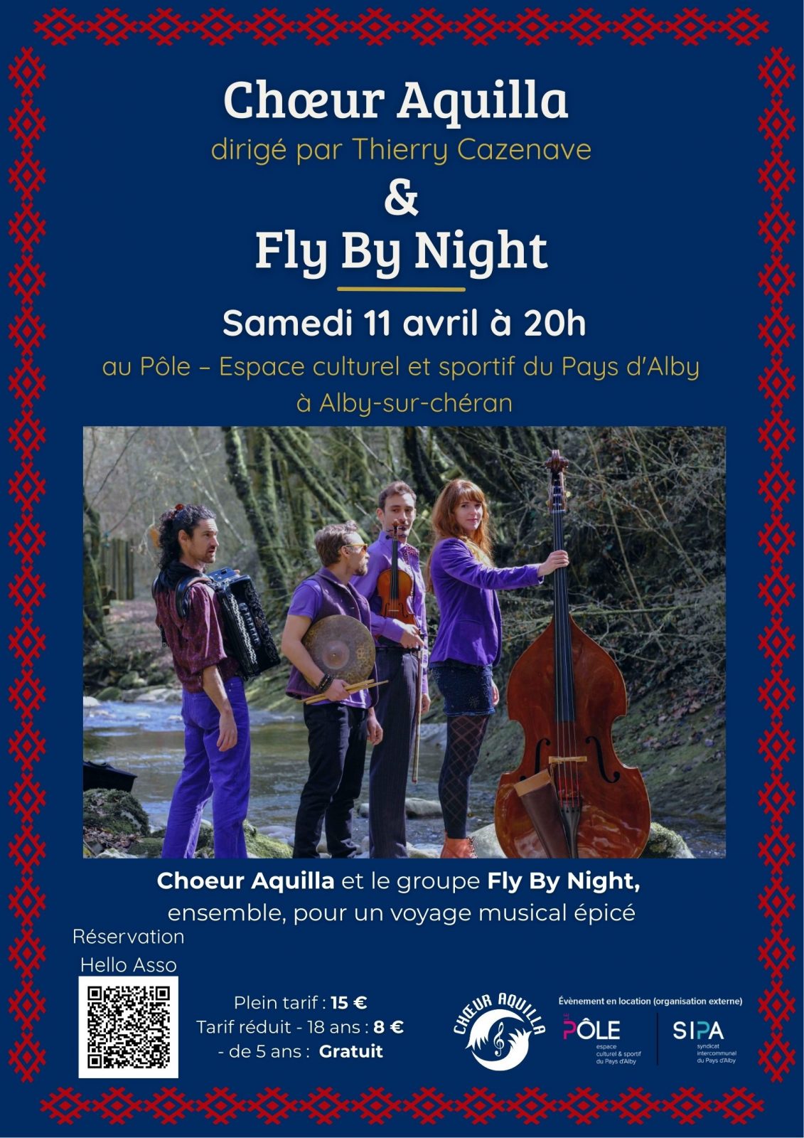 A vos agendas, le Chœur Aquilla invite le groupe Fly By Night. Ce concert est né de l'envie de partager une scène locale avec le groupe. Au plaisir de vous y retrouver...