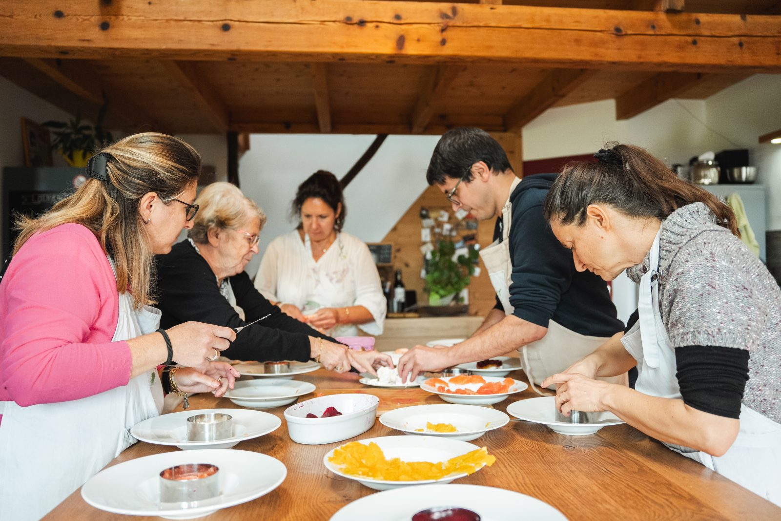 Tous les ingrédients sont fournis. Cuisine avec les produits de saison. Collation et douceur du moment offertes.